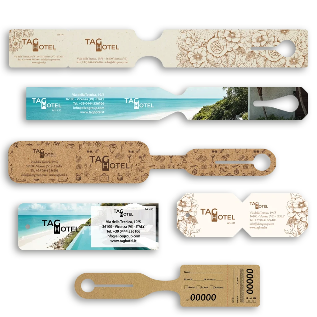 Etichette bagaglio Hotel progettate per offrire un sistema di gestione del deposito bagagli rapido, sicuro e professionale. Realizzate in diversi materiali, garantiscono una tracciabilità impeccabile durante le fasi di check-in e check-out. Scegli tra diversi formati per assicurare ai tuoi ospiti un servizio di custodia bagagli d’élite, fondamentale per le strutture che puntano alla massima soddisfazione del cliente.